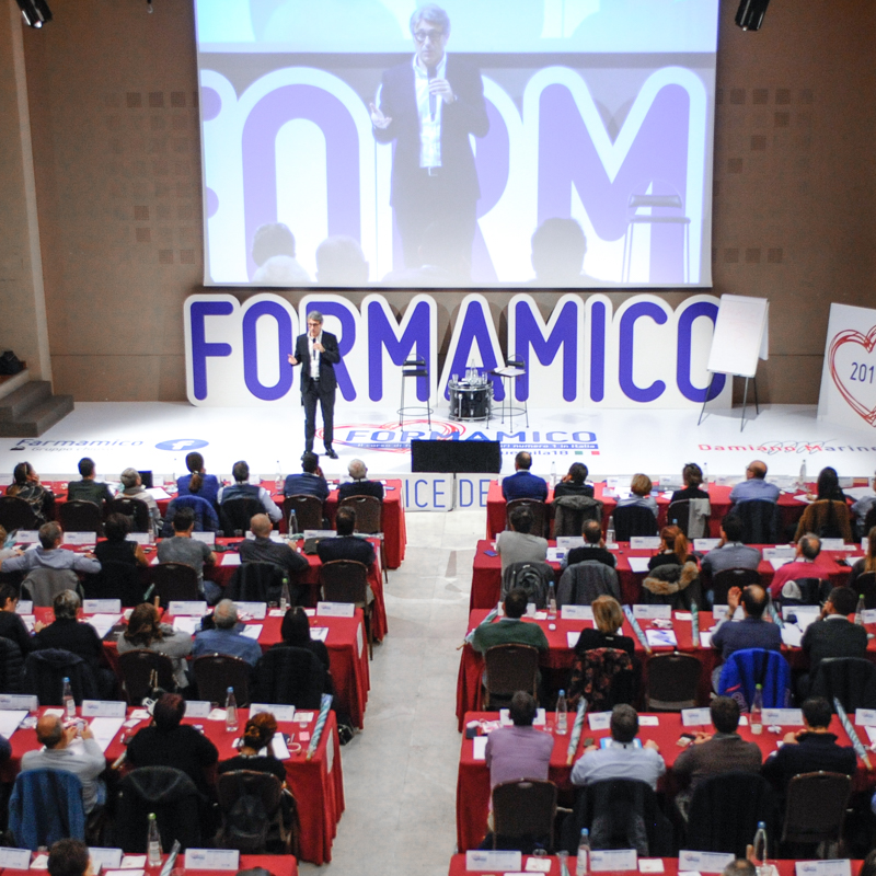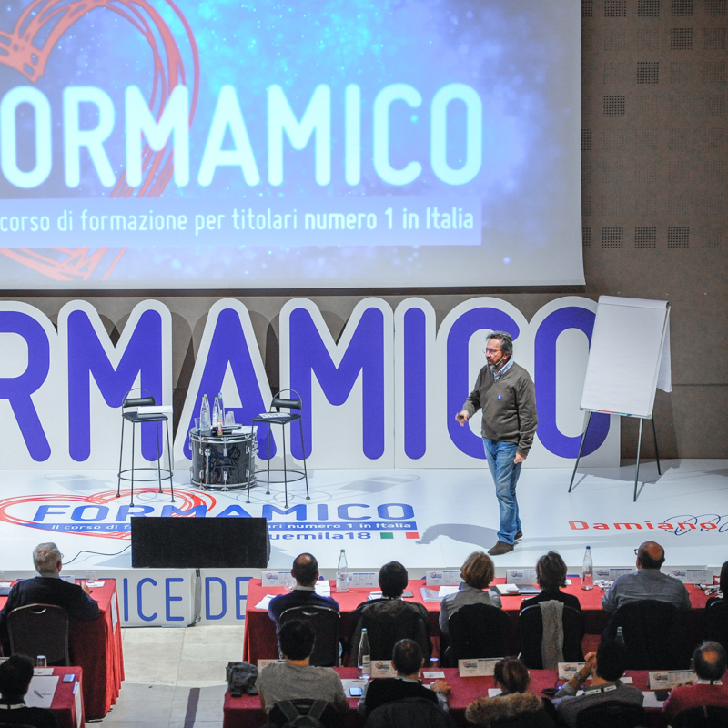 Collaboriamo con Damiano da ben 4 anni come partners tecnici nell’organizzazione degli incontri di formazioni, seguendo la regia degli incontri e supportando i relatori nei loro interventi. In questi tre anni abbiamo seguito Damiano nell’organizzazione degli incontri di formazione impiegando metodologie innovative, tecnologicamente evolute e ad alto impatto con moderne tecniche di regia.Ci siamo occupati della pianificazione e progettazione degli eventi basandoci sulle esigenze specifiche richieste e nel rispetto del budget previsionale, individuando le strutture congressuali più idonee in base al numero di partecipanti, fornendo una stazione multimediale dotata di impianti tecnici audio/video, allestimenti e segnaletica.