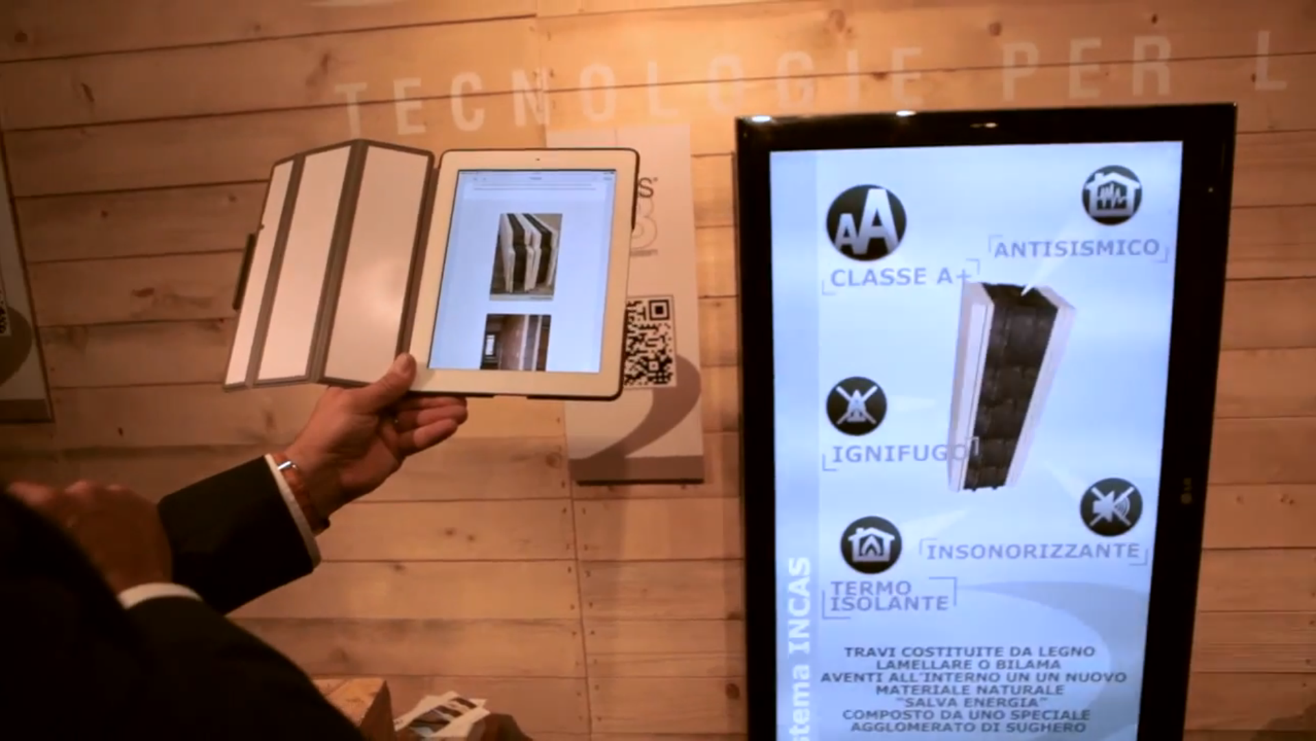 Pe Edili abbiamo portato l’ AR in fiera: con un semplice smartphone o un tablet è stato possibile visualizzare il progetto edilizio e la scelta dei materiali come se fosse già stato realizzato, un passaggio della durata di meno di un minuto, quindi più rapido ed efficace rispetto ai tradizionali rendering, mantenendo le corrette dimensioni e proporzioni così da permettere all’utente di visualizzare il risultato finale.