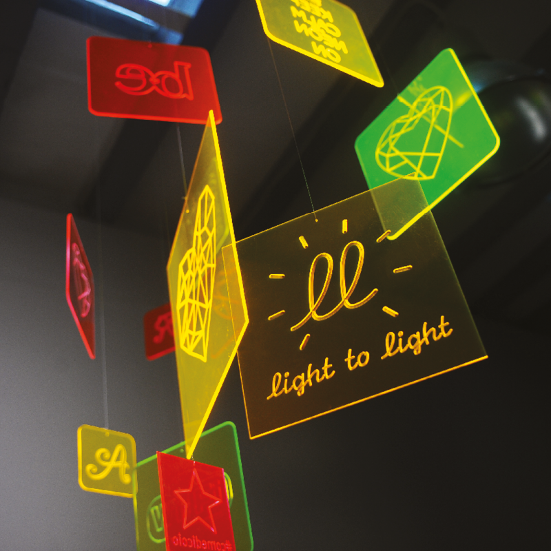 Si tratta di una nuova tecnologia per generare luce a partire dalla luce, senza l’ausilio dell’ energia elettrica. Grazie alla tecnica brevettata da Imbergamo, la luce ambientale viene assorbita e concentrata in linee fluoerescenti, che sembrano illuminate mache in realtà non sono collegate ad alcuna fonte di energia artificiale.