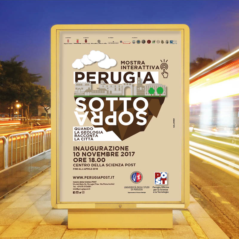 Il più recente è Perugia SottoSopra, mostra di geologia urbana per cui abbiamo realizzato immagine coordinata, grafica istituzionale, campagna di comunicazione visiva e digital strategy. All’ interno degli spazi espositivi abbiamo anche realizzato delle installazioni multimediali e exhibit interattivi per accompagnare i visitatori in viaggio alla scoperta della storia geologica e geomorfologica del Colle di Perugia.